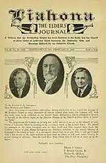 - ↑ "Announcement by The First Presidency of the discontinuation of the Liahona in the United States" Archived 2011-06-11 at the Wayback Machine, Liahona The Elders’ Journal Volume 42, number 18, February 27, 1945. Independence, Missouri, page 409.