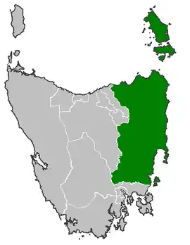 - 1 2 "Division of Apsley" (Map). Maps of the divisions. Tasmanian Electoral Commission. 10 May 2008. Archived from the original on 24 September 2015. Retrieved 12 August 2015.