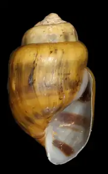Elimia showalteri has a large, robust, smooth shell boldly colored brown and/or green shell.[1]