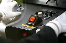 An EB reset switch in a JR West 221 series EMU