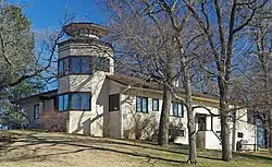The Emil J. Oberhoffer House overlooks Orchard Lake in Lakeville, Minnesota.
