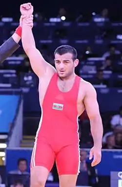 Emin Ahmadov (born 6 October 1986, Baku)[1][2] is an Azerbaijani wrestler. He won the bronze medal at the 2012 Summer Olympics in the Greco-Roman men's 74 kg event. Along the way he beat Neven Zugaj and Zurab Datunashvili, before losing to Arsen Julfalakyan in the semi-final.[3] Because Julfalakyan reached the final, Ahmadov was a participant in the bronze medal repechage, where he beat Aliaksandr Kikiniou in his bronze medal match.[3]
