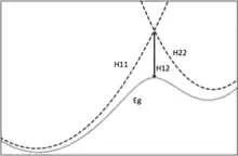 Where most methods for reaction free-energy calculations require at least some part of the modeled system to be treated using quantum mechanics, EVB uses a calibrated Hamiltonian to approximate the potential energy surface of a reaction. For a simple 1-step reaction, that typically means that a reaction is modeled using 2 states. These states are valence bond descriptions of the reactants and products of the reaction. The function that gives the ground energy then becomes: