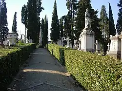 The English Cemetery in Florence, Italy (Italian, Cimitero degli inglesi, Cimitero Porta a' Pinti and Cimitero Protestante) is an Evangelical cemetery located at Piazzale Donatello. Although its origins date to its foundation in 1827 by the Swiss Evangelical Reformed Church, the name "English Cemetery" results from the majority of its burials being Protestants from the British and American communities of Florence, and who gave the largest sum of money for the purchase of its land. The cemetery also holds the bodies of non-English speaking expatriates who died in Florence, among them Swiss and Scandinavians, as well as Eastern Orthodox Christians, among them Russians and Greeks. The cemetery is still owned by the Swiss Evangelical Reformed Church, and is open for the interment of cremated ashes, now of all Christian denominations, but no longer for burials.