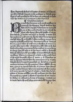 Christine's political writings received some attention too. Livre de la paix was referenced by the humanist Gabriel Naudé and Christine was given large entries in encyclopedias by Denis Diderot, Louis Moréri and Prosper Marchand.[65] In 1470 Jean V de Bueil reproduced Christine's detailed accounts of the armies and material needed to defend a castle or town against a siege in Le Jouvence.[38] Livre des fais d'armes et de chevalerie was published in its entirety by the book printer Antoine Vérard in 1488, but Vérard claimed that it was his translation of Vegetius.[66] Philippe Le Noir authored an abridged version of Christine's book in 1527 under the title L'Arbre des Batailles et fleur de chevalerie (The tree of battles and flower of chivalry).[67]