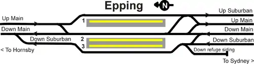 2 | Southbound services to Gordon via Strathfield and northbound services to Hornsby | [17] | |