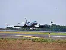 An Indonesian Air Force Dassault Falcon 8X landing at Halim Perdanakusuma AFB