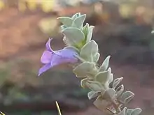 Eremophila mackinlayi subsp. spathulata leaves and flowers | |