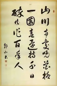 During his time in Japan, Satow devoted much effort to studying Chinese calligraphy under Kōsai Tanzan 高斎単山 (1818–1890), who gave him the artist's name Seizan 静山 in 1873. An example of Satow's calligraphy, signed as Seizan, was acquired by the British Library in 2004.[7]