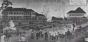 Satow's rise in the consular service was due at first to his competence and zeal as an interpreter at a time when English was virtually unknown in Japan, the Japanese government still communicated with the West in Dutch and available study aids were exceptionally few. Employed as a consular interpreter alongside Russell Robertson, Satow became a student of Rev. Samuel Robbins Brown, and an associate of Dr. James Curtis Hepburn, two noted pioneers in the study of the Japanese language.[2][3] His Japanese language skills quickly became indispensable in the British Minister Sir Harry Parkes's negotiations with the failing Tokugawa shogunate and the powerful Satsuma and Chōshū clans, and the gathering of intelligence. He was promoted to full Interpreter and then Japanese Secretary to the British legation, and, as early as 1864, he started to write translations and newspaper articles on subjects relating to Japan. In 1869, he went home to England on leave,[4] returning to Japan in 1870.