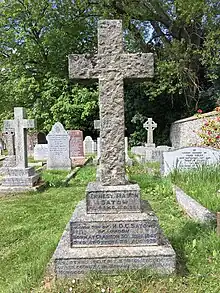 He died on 26 August 1929 at Ottery St Mary, and is buried in the graveyard of St Mary's Church, Ottery St Mary.