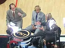 Ernest Thorwald Johnson Jr. (born August 7,[2] 1956) is an American sportscaster for TNT Sports. Johnson is currently the television voice and a studio host for Major League Baseball on TBS, hosts Inside the NBA for TNT, and NBA TV and contributes to the joint coverage of the NCAA Division I men's basketball tournament for TNT Sports and CBS Sports. His father was Ernie Johnson Sr., a Major League Baseball pitcher and Atlanta Braves play-by-play announcer.[3]