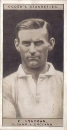 Ernest Knapman (second ¼ 1899[4] – death unknown) was an English rugby union and professional rugby league footballer who played in the 1920s. He played representative level rugby union (RU) for England (non-Test), South of England and Devon, and at club level for Torquay RUFC, as a fullback, i.e. number 15, and representative level rugby league (RL) for Great Britain and England, and at club level for Oldham (Heritage № 205), as a fullback, i.e. number 1.[1]