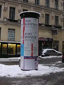 Ernst Amandus Theodor Litfaß (or Litfass; German pronunciation: [ˈlɪtfas];[1] 11 February 1816 – 27 December 1874) was a German printer and publisher. He invented the free-standing cylindrical advertising column which bears his name in German (Litfaßsäule).[2]