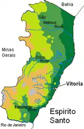 Espírito Santo (also known by its official abbreviation ES) (Portuguese: [(i)sˈpiɾitu ˈsɐ̃tu] ; lit. ⓘ 'Holy Spirit') is a state in southeastern Brazil. Its capital is Vitória, and its largest city is Serra.[1] With an extensive coastline, the state hosts some of the country's main ports, and its beaches are significant tourist attractions.