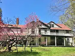 Esperanza is located in a rural but geographically central part of New Hartford, at the northwest corner of Town Hill Road and Beeney Road. The 18-acre (7.3 ha) property is wooded in its eastern part, where its buildings are located, and is a tree-fringed cleared field to the west. The estate includes a main house and two small guest houses, a carriage house, and a summer kitchen. The main house is a somewhat rambling multigabled 2+1⁄2-story wood-frame structure, with porches to the east (where the main entrance is) and the west (where the fields provide a view to the hills further west). It is now predominantly Colonial Revival in style, with aspects of the Shingle style evident in some of its details. The two guest houses are vernacular single-story buildings with Colonial Revival porches.[2]