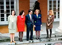 Esperanza Aguirre self-defines as a "liberal".[29] Known by her professed anglophilia,[30] she has cited her admiration for the figure of Margaret Thatcher.[31] According to Jorge del Palacio, Aguirre aimed to develop a Spanish version of the uneasy union between conservatism and the liberalism inspired by Friederich Hayek.[32] She has often been regarded as a leading figure of the most conservative wing of the PP,[33][34] and, having reportedly held political differences and an uneasy personal relationship with PP's leader Mariano Rajoy, she personally asked the latter for a change in the leadership of the party before the June 2016 general election.[35][36]