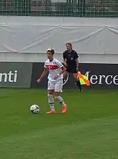 Erol returned to Istanbul and signed with Ataşehir Belediyespor before the 2017–18 league champion club's participation at the 2018–19 UEFA Women's Champions League qualifying round.[15] She played in all three matches of the qualification round.[16][17][18] In the 2018–19 league season, she transferred to Beşiktaş J.K.[19] She enjoyed the champion title of her team in the 2018–19 season.[8] She took part at the 2019–20 UEFA Women's Champions League - Group 9 matches.[20][21][22]