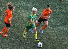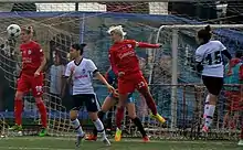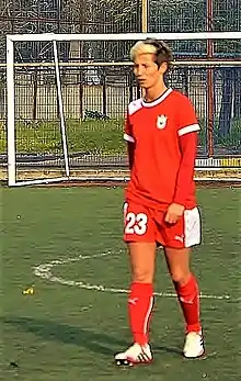Erol scored a winner over Northern Ireland in the Euro 2009 qualifying.[23] She is also the owner of four goals scored in friendly matches against Bulgarian, Russian and Greek national women.[24][25][26][27]
