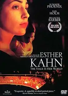 Esther Kahn is the first English-language film by the French director Arnaud Desplechin. It premiered at the 2000 Cannes Film Festival where it competed for the Palme d'Or,[1] but was not distributed to the United States for two years until it played in New York City in 2002. It stars Summer Phoenix as Esther and Ian Holm as her friend and teacher, Nathan Quellen.