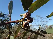 - 1 2 Nicolle, Dean; French, Malcolm E. (2012). "A revision of Eucalyptus ser. Falcatae (Myrtaceae) from south-western Australia, including the description of new taxa and commonts on the probable hybrid origin of E. balanites, E. balanoplex and E. phylacis" (PDF). Nuytsia. 22 (6): 437–441. Retrieved 8 August 2019.