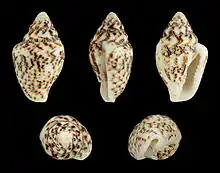 - ↑ Kiener (1840). General species and iconography of recent shells : comprising the Massena Museum, the collection of Lamarck, the collection of the Museum of Natural History, and the recent discoveries of travellers; Boston :W.D. Ticknor,1837 (described as Buccinum flexuosum Lamarck, 1822)