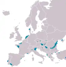 Breeding range in Europe in blue (also in Asia and Africa, not shown)