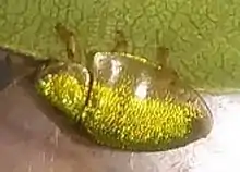 Eurypepla calochroma, commonly known as the Geiger tortoise beetle, is a species of tortoise beetle.[1] It is found in Florida, Central America and the Caribbean. This specific beetle only feeds on the Geiger tree (Cordia sebastena) throughout all of its life stages.