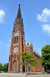 The seat of the church is in Bremen. It is a full member of the Protestant Church in Germany (EKD), and is a United church combining both Lutheran and Reformed traditions. Brigitte Boehme became the church's first female president in 2001. The church had 176,786 members as of December 2020[1] in 68 parishes. Laic presidency is one of the special characteristics of the Evangelical Church of Bremen. It has no theological headmaster. The parishes have a high degree of autonomy, and there is a great variety between liberal and conservative ones. Each member of the church has the free choice, which parish he wants to join. Bremen Cathedral is the most prominent place of worship, but it has no higher status than any other parish. The Evangelical Church of Bremen is a member of the UEK and of the Community of Protestant Churches in Europe. In Bremen the church has its own evangelical academy. The church has allowed the ordination of women and the blessing of same-sex unions.[2]