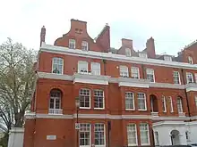 The land belonged to Sir Charles James Freake.[1] After his death in 1884, his widow, Lady Freake, and banker Charles Townshend Murdoch, hired C. A. Daw and Son to erect buildings around a garden square.[1] It was named in honour of William John Evelyn.[1] Construction began in 1886, and it was completed in 1896.[1]