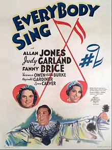 Everybody Sing is a 1938 American musical comedy film directed by Edwin L. Marin, and starring Allan Jones, Judy Garland and Fanny Brice, and featuring Reginald Owen and Billie Burke. The screenplay and story by Florence Ryerson and Edgar Allan Woolf had additional work by James Gruen and Milton Merlin with uncredited contributions from Bert Kalmar, Harry Ruby and Dalton Trumbo.