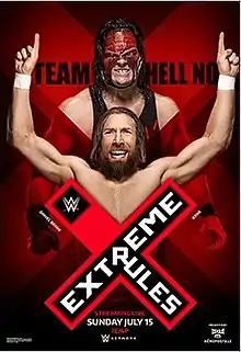 Prior to the gauntlet match, Daniel Bryan had a stare down with SmackDown Tag Team Champions The Bludgeon Brothers (Harper and Rowan). During the gauntlet match, The Bludgeon Brothers attacked Bryan, thus ensuring Bryan's elimination.[15] On the June 26 episode of SmackDown, Kane returned to save Bryan from a post-match assault from The Bludgeon Brothers, reuniting Team Hell No. SmackDown General Manager Paige then scheduled Team Hell No to face The Bludgeon Brothers for the tag titles at Extreme Rules.[16]