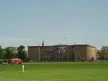 The southern part of Fælledparken was sometimes used by rescue helicopters from the Danish Air Force when transporting patients to Rigshospitalet. This practice was abandoned in the year 2006 with the construction of a helicopter platform on the roof of Rigshospitalet. Archived 2007-03-11 at the Wayback Machine