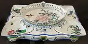 The service was then completed (tea cups, coffee, etc.) and the manufacture left to the Creil and Montereau factory. Barluet, Lebeuf's successor, re-edited it in the early 1880s. In 1885, Eugène Rousseau sold his business to Ernest-Baptiste Leveillé, who continued to publish the service under his own brand. Many reissues or variants followed. Among them, that of the Manufacture Jules Vieillard in Bordeaux (late 19th century), that of the Crystal Stairs (early 20th century), or even of the faience of Gien The large birds still in reissue. It can also be noted that many pieces of this service are now preserved in various French national museums (Musée d'Orsay, Musée national Adrien Dubouché, etc.).[11]