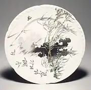 In 1856, Bracquemond discovered a collection of Manga engravings by the Japanese Hokusai, typical of the pictorial genre known in Japan as Kachô-ga, depicting flowers and birds with insects, crustaceans and fishes, in the workshop of his printer Auguste Delâtre, after having been used to fix a consignment of porcelain. He was seduced by this theme that made him the initiator of the vogue of Japonisme in France which seized the decorative arts during the second half of the 19th century.[8][9]