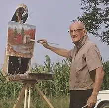 ![]() Weber in his lab. One of his paintings is visible in the background. | |