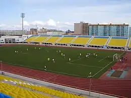A football match taking place at FC Yakutia's Tuymaada Stadium in 2007.