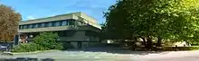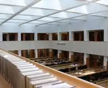The Law Faculty offices, together with the English Faculty, are situated in the St Cross Building, which is a Grade II* listed building completed in 1964 and designed by Sir John Leslie Martin (architect of the Royal Festival Hall in London) and Colin St John Wilson (architect of the New British Library). The St Cross Building is also home to the Bodleian Law Library.[24][25]