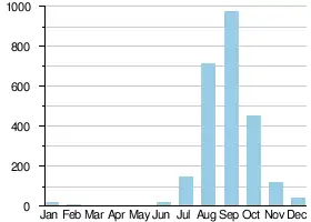 The Falémé River is around 650 km in length and drains a basin of 28,900 km2. Its source is in the northern part of the Fouta Djallon highlands at an altitude of 800 m.[2] Most of the rainfall on the highlands occurs between May and October as a result of the West African Monsoon. August is normally the wettest month. The flow of the river is highly seasonal, with the maximum occurring during September and very little flow between December and June. The average annual discharge of the river over the period 1904-1984 was 6.59 km3.[1]