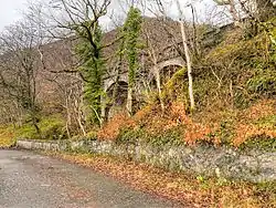 The viaduct spans the small gully created by the Falls of Cruachan, close to the entrance to the pumped-storage Cruachan Power Station, which is located in a chamber within Ben Cruachan.[11][12]
