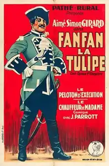 Fanfan la Tulipe is a 1925 French swashbuckler film directed by René Leprince based on a screenplay by Pierre-Gilles Veber and starring Aimé Simon-Girard, Simone Vaudry, and Jacques Guilhène.[1][2]