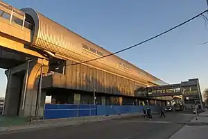 The station has an elevated island platform.