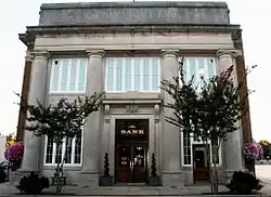 The Farmers State Bank is a historic commercial building at 1001 Front Street in Conway, Arkansas. It is a two-story masonry structure in the Classical Revival style. Its side walls are finished in brick, and most of its facade is in stone. The dominant feature of the facade are four massive engaged Tuscan columns, which support an entablature, cornice, and parapet. The main entrance is set in the central bay, with a bracketed hood above. It was designed by Thompson & Harding and built about 1918.[2]