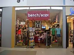 Philippine brand clothing that are popular in and outside the Philippines include Crispa, Bench, Onesimus, Michel André, Penshoppe, Loalde, Kamiseta (literally "T-shirt"), Maldita and Bayo.[8]
