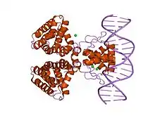 - ↑ Rigali S, Derouaux A, Giannotta F, Dusart J (April 2002). "Subdivision of the helix-turn-helix GntR family of bacterial regulators in the FadR, HutC, MocR, and YtrA subfamilies". J. Biol. Chem. 277 (15): 12507–15. doi:10.1074/jbc.M110968200. PMID 11756427.