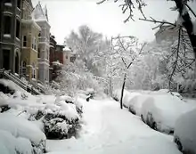 The February 5–6, 2010 North American blizzard, commonly referred to as Snowmageddon,[1] was a blizzard that had major and widespread impact in the Northeastern United States. The storm's center tracked from Baja California Sur on February 2, 2010, to the east coast on February 6, 2010, before heading east out into the Atlantic. Effects were felt to the north and west of this track in northern Mexico, California, and the southwestern, midwestern, southeastern, and most notably Mid-Atlantic states. Severe weather, including extensive flooding and landslides in Mexico, and historic snowfall totals in every one of the Mid-Atlantic states, brought deaths to Mexico, New Mexico, Virginia, Pennsylvania, and Maryland.[2]