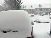 In Pittsburgh, both the impact and severity of the storm caught many by surprise. Snow began falling in earnest late Friday morning. The sudden onset of the storm forced many local school districts, especially districts south of the city, to close early due to rapidly deteriorating road conditions; this is an extremely uncommon event for schools in southwestern Pennsylvania.[45] Nearly all schools, including the Pittsburgh Public Schools, cancelled classes the following week. Most local universities were also forced to cancel classes for much of the following week due to the storm's effects. Additionally, over 130,000 people in the Pittsburgh area were without power as a result of the heavy, wet snow.[46] For many residents, power was not restored until Monday, February 15.