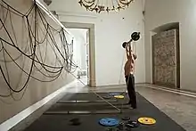 A shift in Díaz’s perception of technology came with the project "Eccentric Gravity"[16] (2015) curated by Jérôme Sans and Jen Kratochvil, a site-specific architectural intervention in the historical Renaissance Royal Belvedere Pavilion.