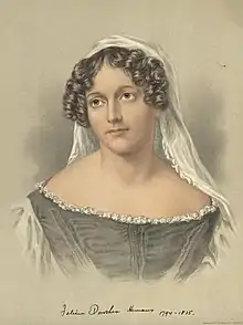 Felicia Dorothea Hemans (25 September 1793 – 16 May 1835) was an English poet (who identified as Welsh by adoption).[1][2] Two of her opening lines, "The boy stood on the burning deck" and "The stately homes of England", have acquired classic status.