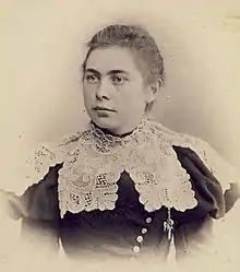 She was tutored at home before attending the Marinskaja Girls' Gymnasium in Kaunas in 1885–89. She was expelled from the school for inciting five other girls to disobey a new requirement to pray in an Eastern Orthodox Church, but after much difficulty managed to gain admission to Vilnius Girls' Gymnasium and graduate in 1890.[1] For a year, she studied Polish history and French language at the secret "Flying University" in Warsaw.[3] Upon her return, she worked at a bank in Ukmergė with her father until his death in 1898.[1] This experience was particularly useful later in life when she organized finances of various organizations.[2] In 1899, she married engineer and childhood friend Jonas Bortkevičius (1871–1909). He was not of noble birth and her family disapproved the marriage.[1] The newlyweds moved to Vilnius, where they became involved in public life. She studied the Lithuanian language and became passionate about its revival.[3]